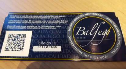 Pełna identyfikowalność produktów Balfegó — kod QR z datą połowu, wagą, poziomem tłuszczu i certyfikatami.